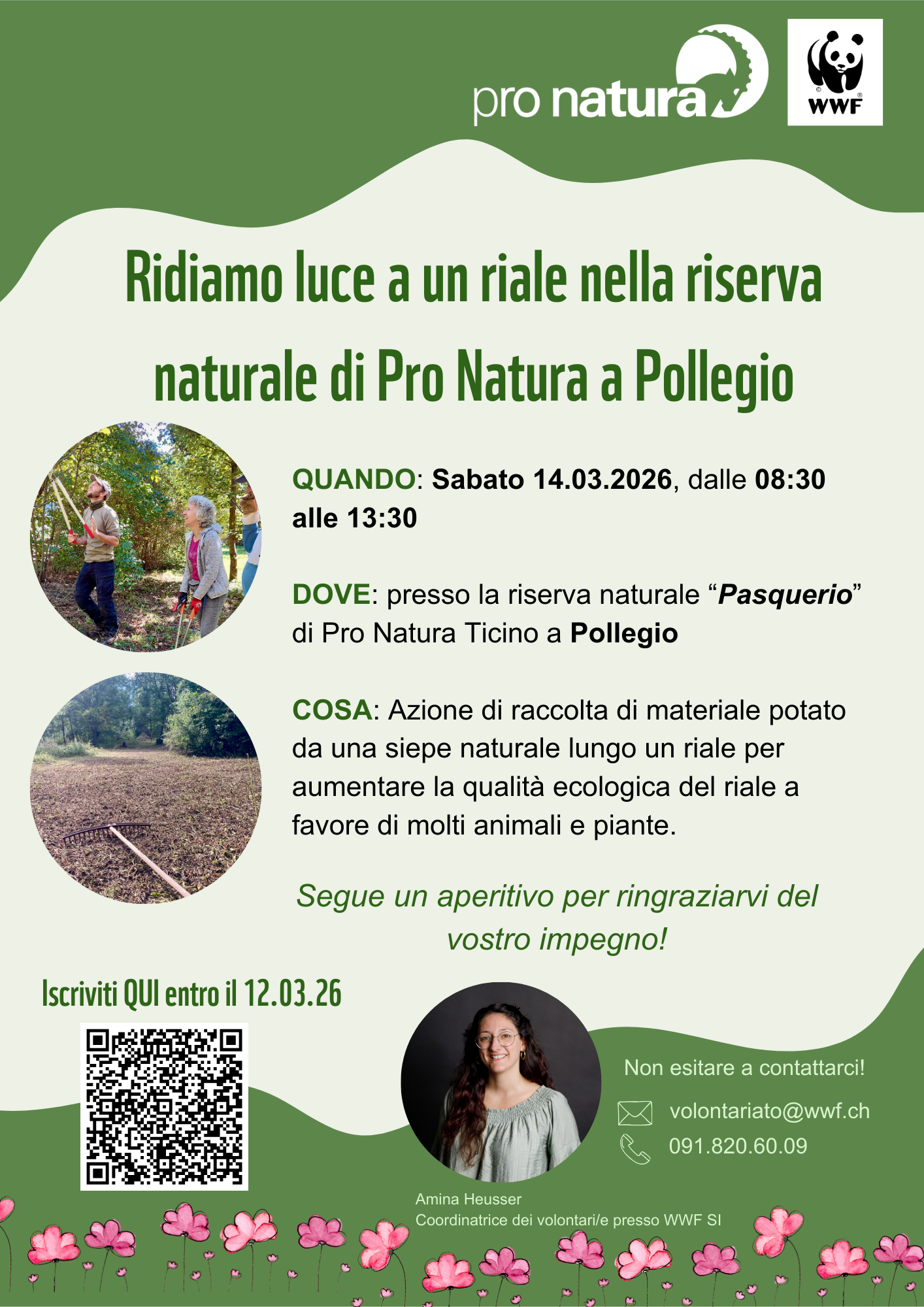 Sabato 14 marzo proponiamo un’azione di ecovolontariato nella quale raccogliamo il materiale potato da una siepe naturale lungo un riale della riserva naturale “Pasquerio” di Pro Natura Ticino, aumenteremo così la qualità ecologica del riale a favore di molti animali e piante.